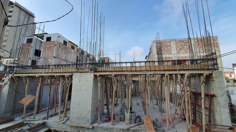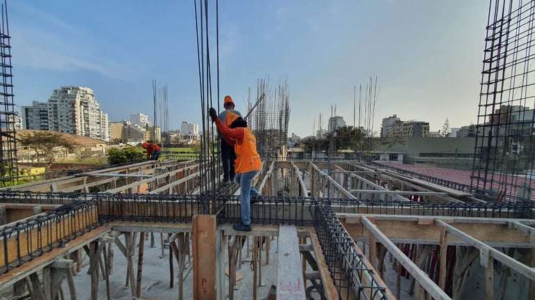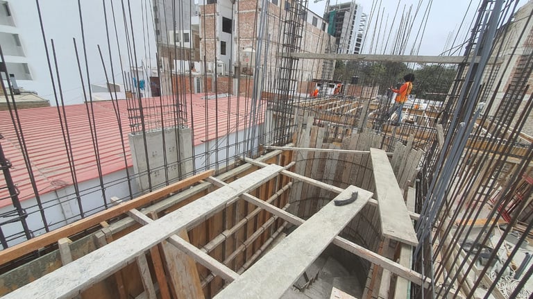 Prestación del servicio de construcción para la empresa HRK CONSTRUCTORA. Encargados de la mano de obra de un departamento exclusivo de 7 pisos, con amplias habitaciones, lobby, cocheras, área social y acabados de primera.